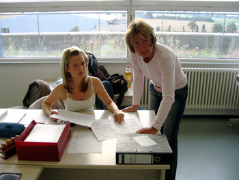 die Bankarbeit, wobei alle Ein- und Ausgangsrechnungen im PC-Programm vermerkt